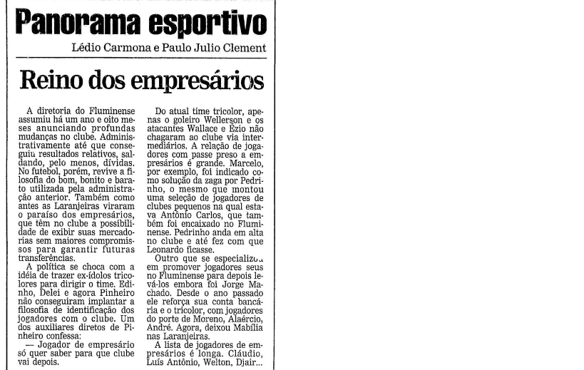 Exatamente essa foi a manchete da coluna Panorama esportivo do Jornal O Globo de 4 de Setembro de 1994.